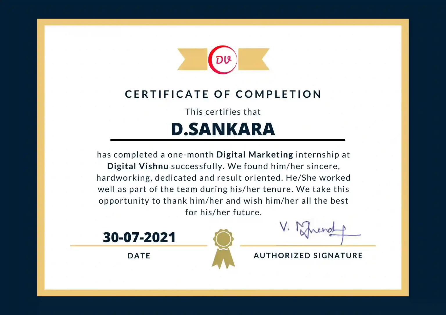 Digital Vishnu Academy is a great option for learning digital marketing in Coimbatore. It offers affordable fees, expert trainers, and practical training that helps you learn by doing. They also teach every module with live projects and provide internship program, making it easier to find a job after completing the course. This course is perfect for beginners who are just starting out, professionals who want to improve their skills, and business owners who want to grow their online presence. Whether you’re starting your career or looking to advance it, Digital Vishnu Academy is a smart choice!